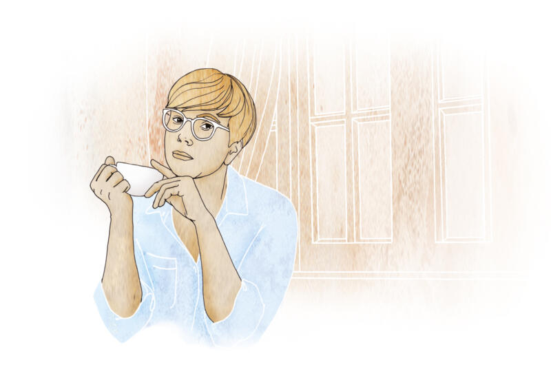 Illustration kvinna med kaffekopp för Kvinnofridslinjen