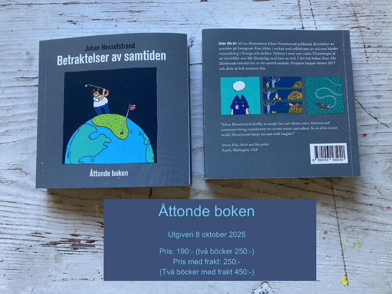 Jag publicerar fem bilder i veckan på instagram.com/johanhesselstrand med satir och folkliv. Det har jag gjort sedan 2017 och för varje år samlar jag bilderna i böcker.