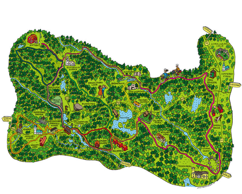 Karta för Cykla i Filmlandskapets Småland - Astrid Lindgrens hemtrakter.