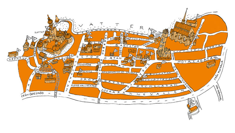 Har gjort många handritade kartor under åren. I Vadstena och på andra ställen.