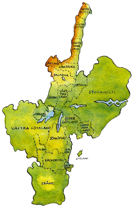 Karta för Svensk Handel.  Befolkningsfördelningen i Sverige.