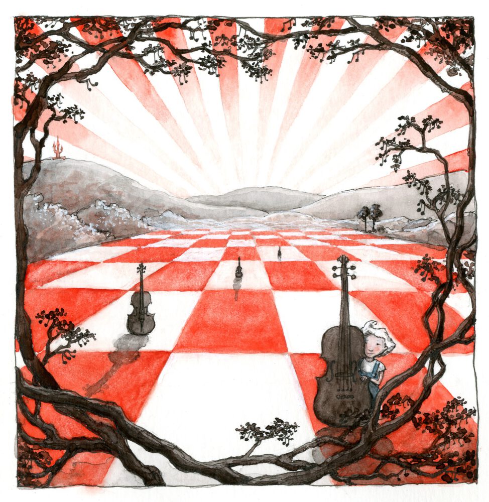 Vindla i glaslandet är ett projekt skapat av Vindla String Quartet. Det är en interaktiv klassisk musik-föreställning med livemusik för barn. Mina bilder är ur ett häfte som följer med CD´n, de är målade i akvarell under 2016.