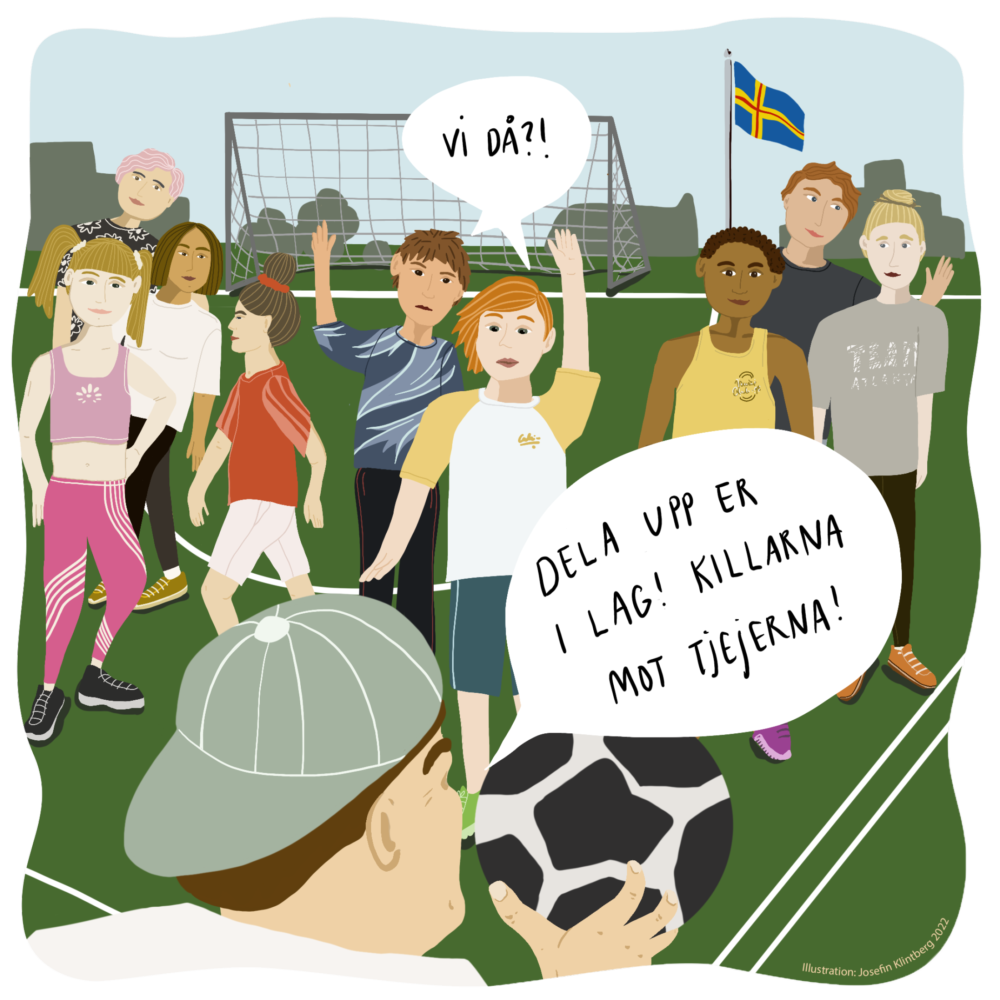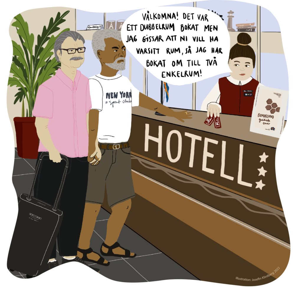 En serie av illustrationer som del av utbildningsmaterial inom HBTQIA-certifiering på Åland. Tankeväckande och utbildande situationer med lokal anknytning.