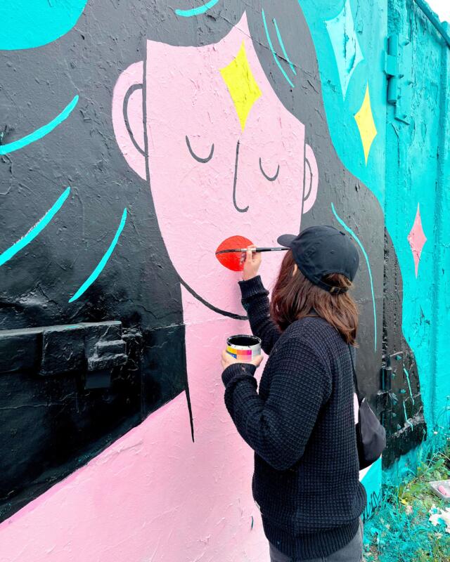 Vägg målning på Springbeast gatukonst festival 2025, Snösätra, Stockholm.