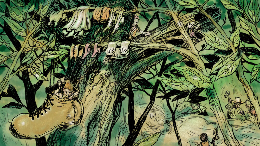 Illustrationer till projektet Sägenresan, en interaktiv karta med sägner från hela Sverige. Digitalt måleri i Procreate och photoshop.