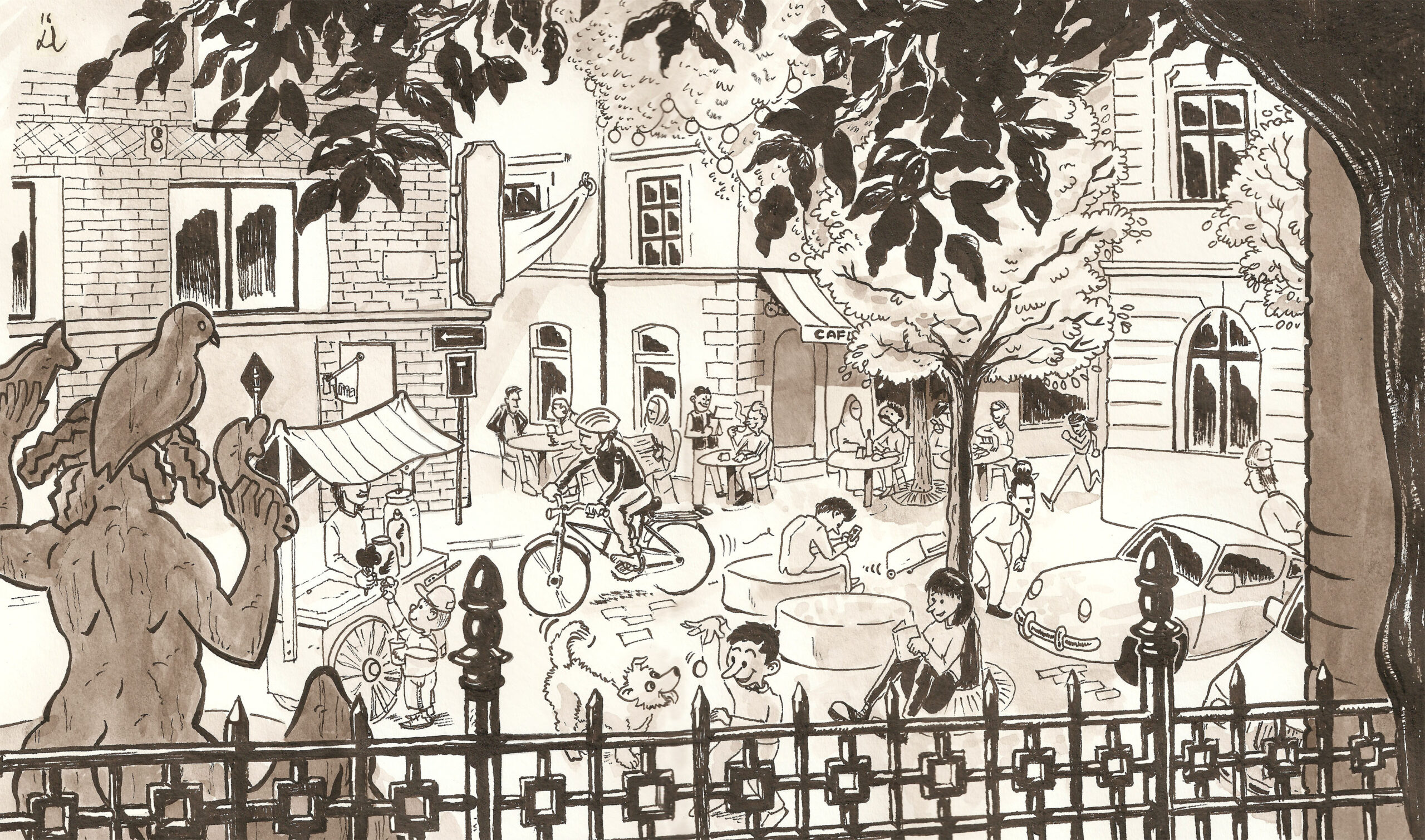 Jag tecknar film, serier och illustrationer - oftast för barnböcker, läromedel och i redaktionella sammanhang. Bilderna är detaljrika, fulla av rörelse och (om det passar) humor. Stadsmiljöer och kartor ligger nära hjärtat men jag är nyfiken av mig och provar gärna andra områden. Har en bakgrund som tapetdesigner och är numera verksam i Gävle.