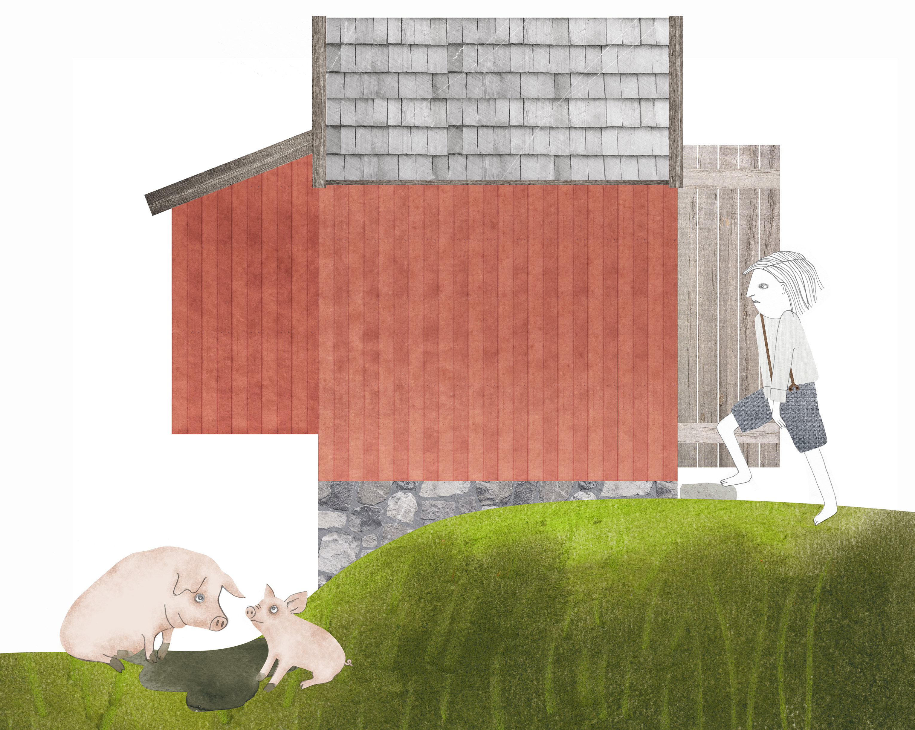 Bilderbok, Blandteknik, Blyerts, Bokillustration, Collage, Illustration
