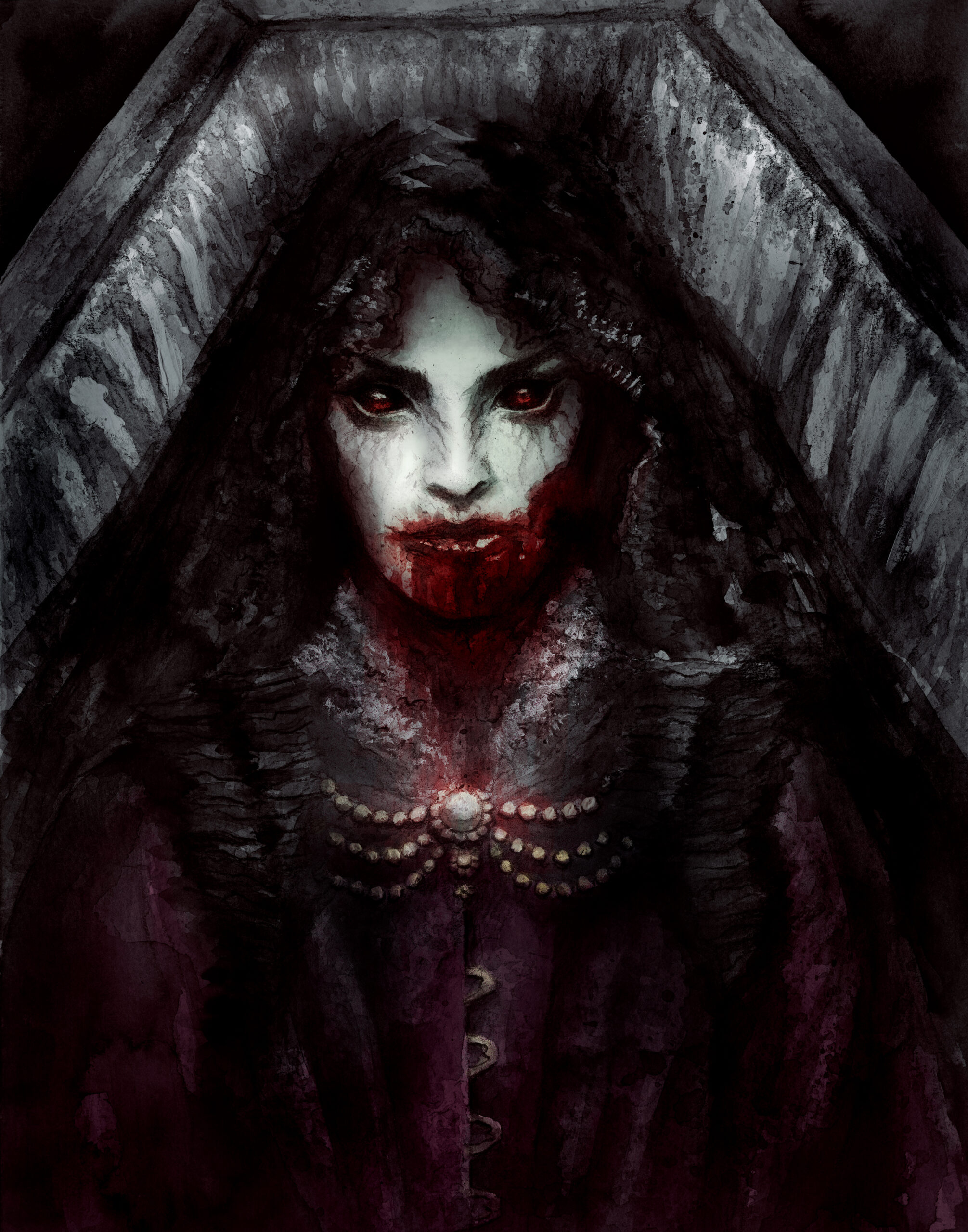 Blandteknik, Blyerts, Bokomslag, Fantasy, Illustration, Tusch