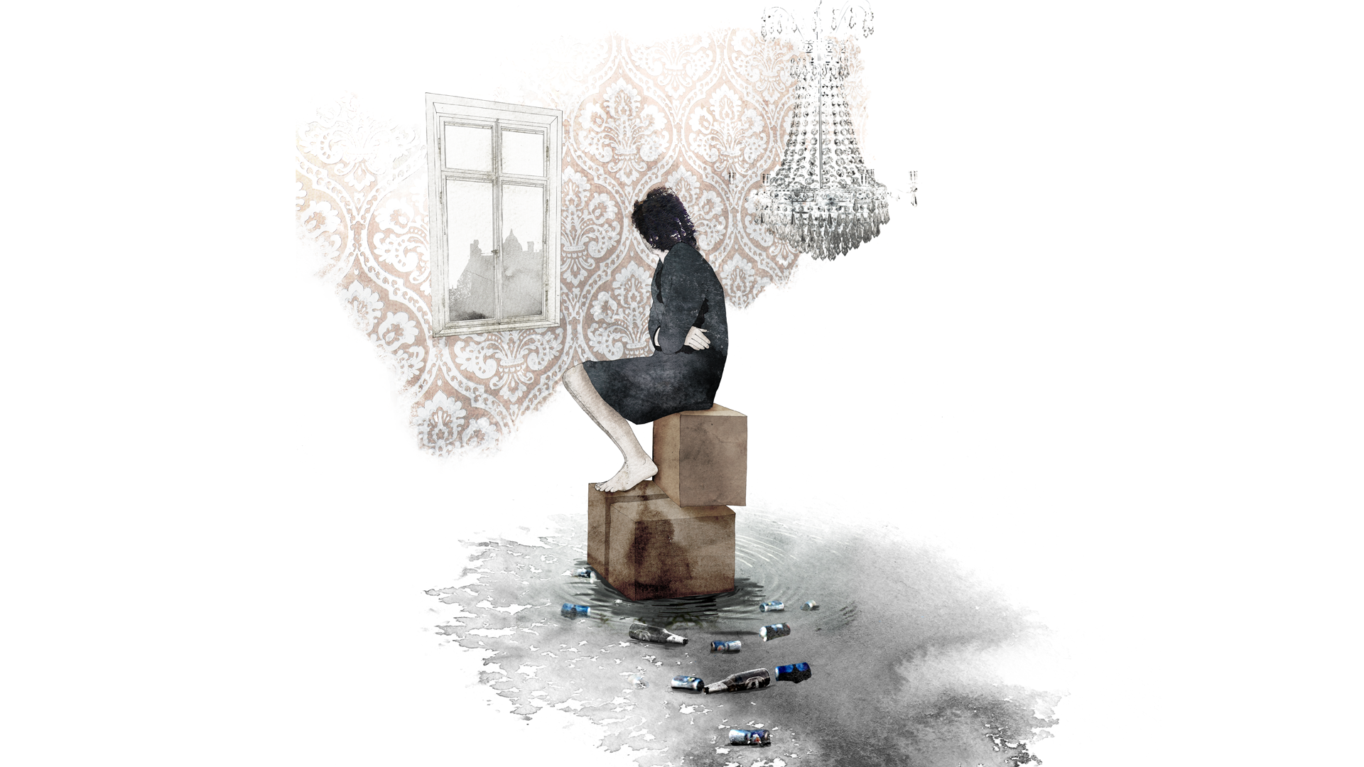 Akvarell, Blandteknik, Illustration, Kol, Redaktionellt