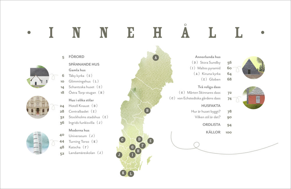 Nyfiken på hus – en arkitekturbok för barn och vuxna (DIBB Förlag 2021) innehåller 18 kända och mindre kända byggnader i Sverige. Författare till boken är Karin Schönmeyr Elfström. Jag har ansvarat för framtagning av illustrationer, den grafiska formen samt layout.