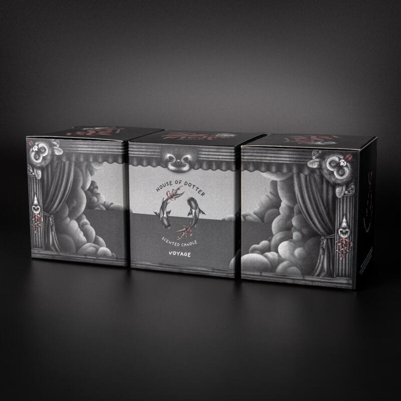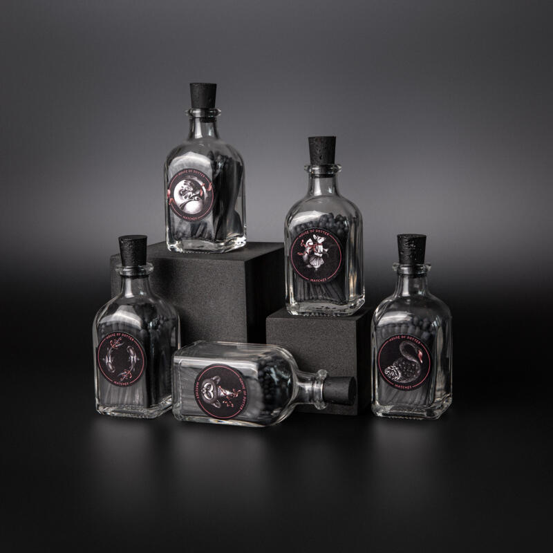 Illustration av en serie doftljus med tillhörande tändstickor.