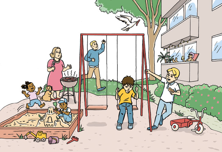 Illustrationer till kapitelboken Första fallet på Guldhöjden av Martin Jern.