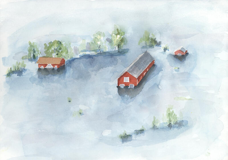 Akvarell illustrationer för Länsstyrelsen i Dalarna på temat krisberedskap