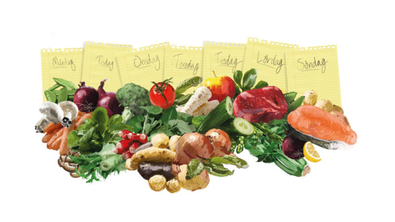 Illustration för att ha en vegetarisk "arbetsvecka" dvs 5 dagar veg 2 dagar kött och fisk.