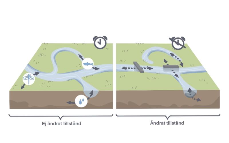 Figur som visar artificiella hinder för biologisk rörelse i vattendrag