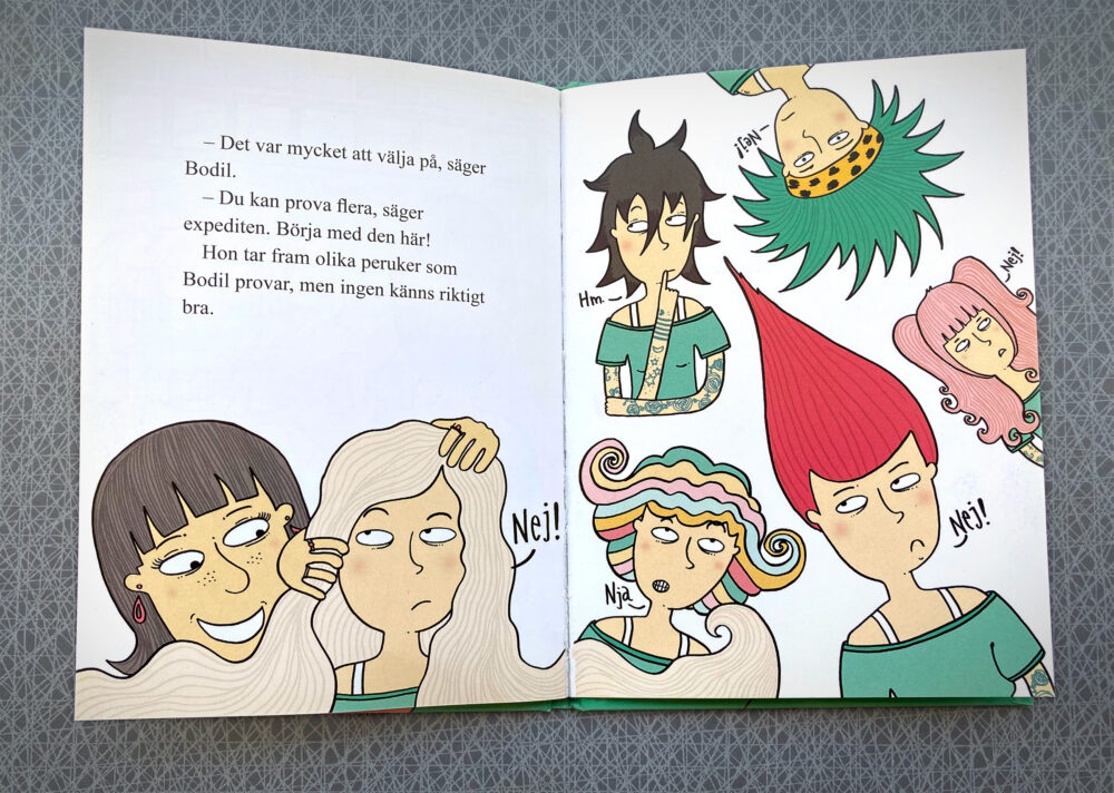 Illustrationer till boken ”Bodils nya frisyr” som är den första boken i den humoristiska serien om Bodil och hennes hund Tofu. Böckerna om Bodil ingår i en serie lättlästa böcker för barn och ungdomar. Lättlästa böcker är tänkta att fungera som ett bra verktyg för att tränar upp barns läsförmåga & ordförråd. Författare: Mårten Melin.