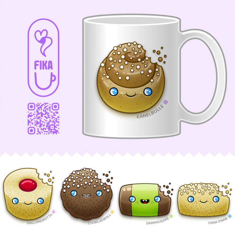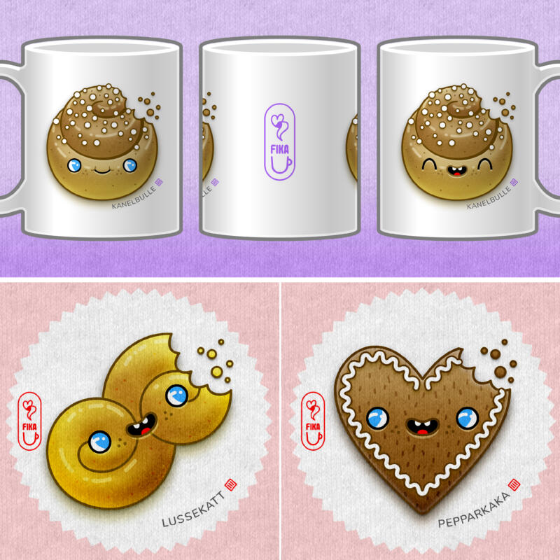 Svenska fikaklassiker till din fikapaus. Serie av tryck till kaffemugg.