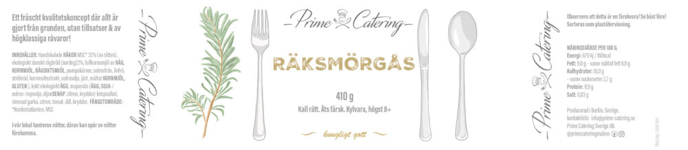 Uppgiften var att göra en elegant etikett. Jag tecknade dillkvisten I Procreator, tallrik och bestick i Illustrator och satt ihop etiketten med bild och text i InDesign.