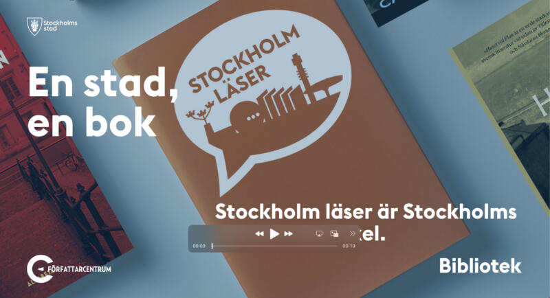 Kampanjmaterial till Stockholms stadsbibliotek. Här visas exempel från kampanjen Stockholm läser som gick på webben, sociala medier och på digitala skyltar inne i biblioteken.