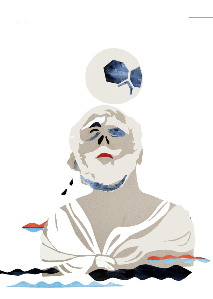 Illustration till krönika i tidningen. En vinkel på fotboll ur filosofen Heraclides perspektiv.