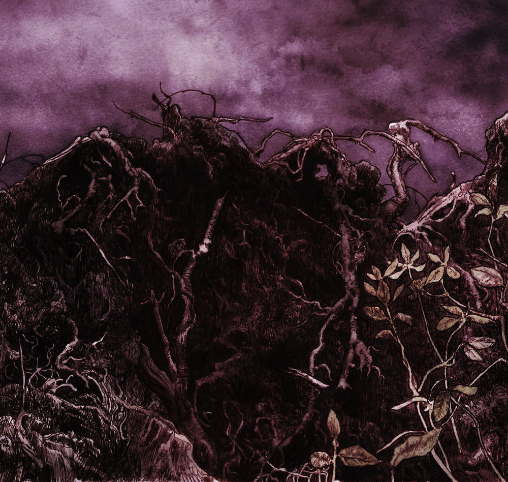 Rotvälta. Tusch och akvarell.