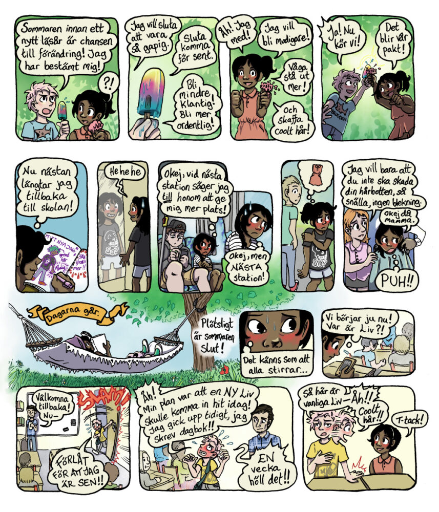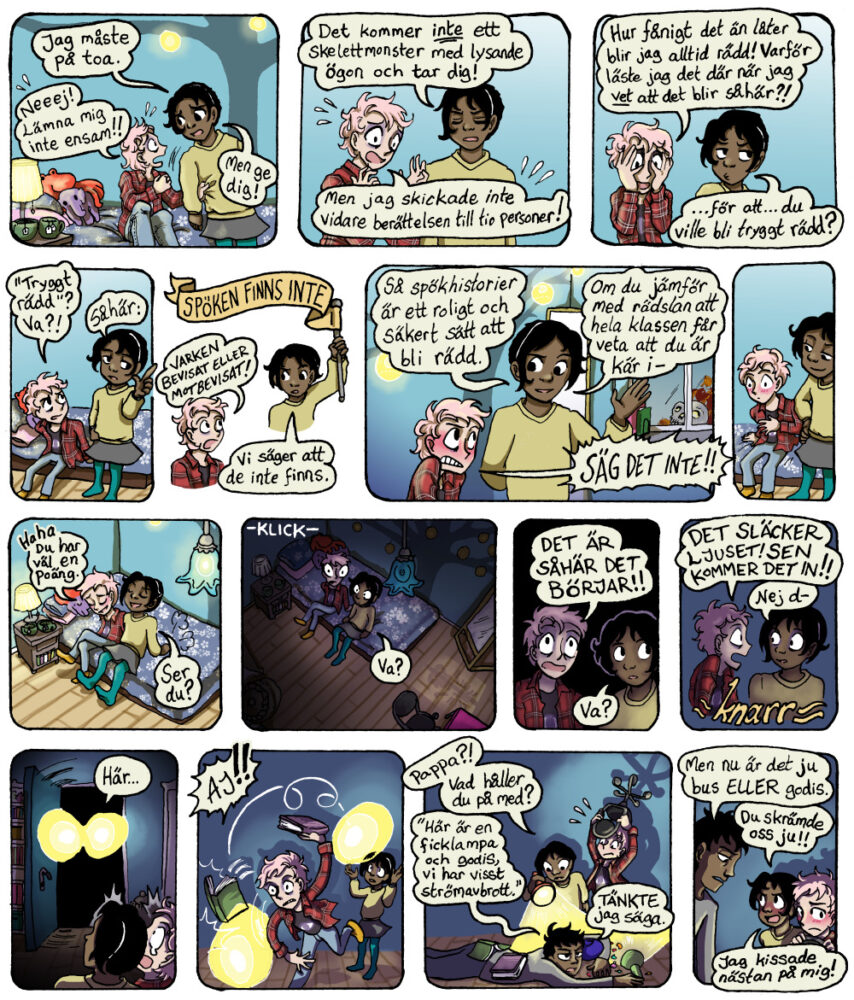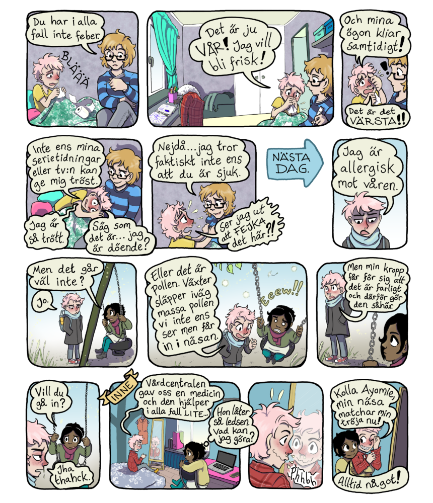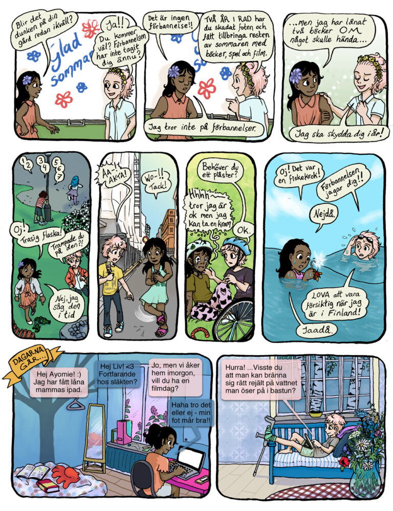 Sedan ett par år tillbaka tecknar jag serien Ayomie & Liv till Kamratposten. Den kretsar kring två flickor som löser vardagsproblem med hjälp av trivia och sin vänskap.