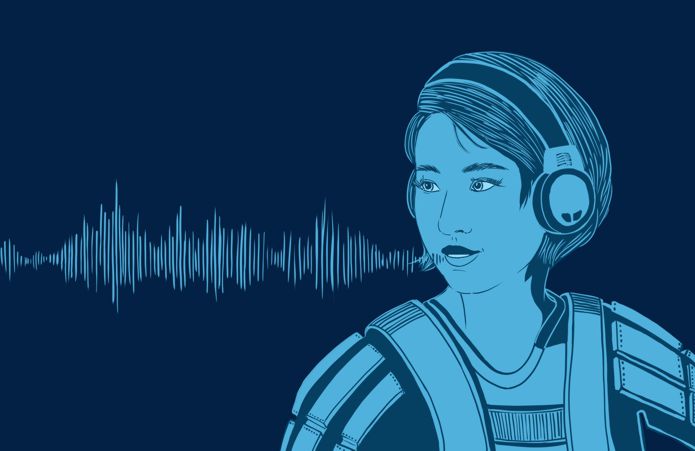 Kvinna med hörlurar och språktest inom sjukvård och äldrevården