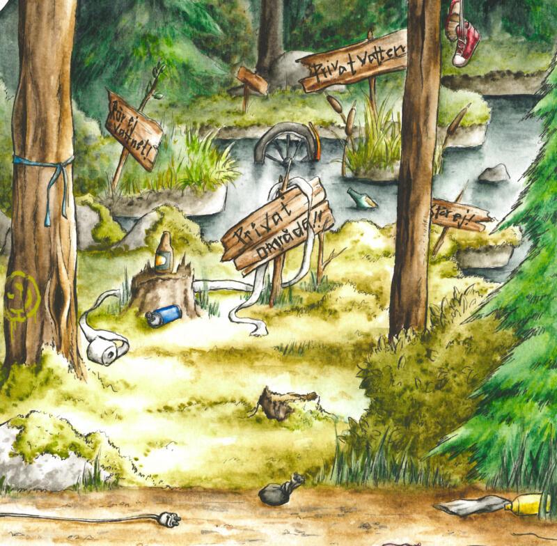 Illustration för att belysa det stora ansvaret som kommer med allemansrätten och hur ofta det tyvärr missbrukas.