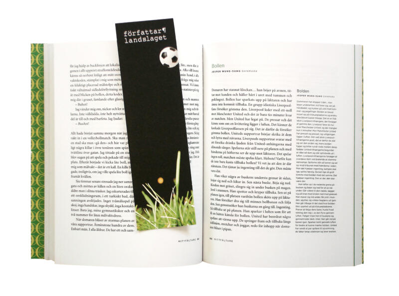 Tvåspråkig bok där texten i originalspråk har satts i en smalare kolumn vid sidan om huvudtexten på svenska. Ett bokmärke trycktes samtidigt som omslaget.